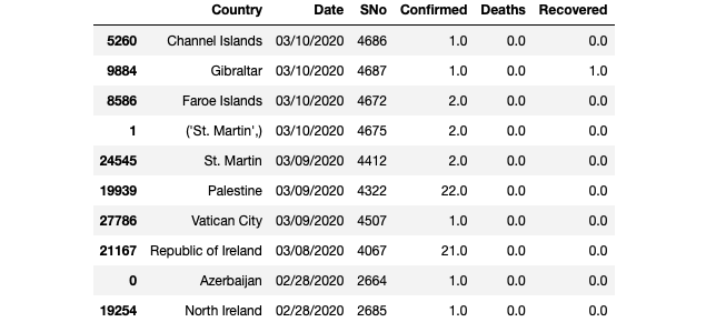 - In the third line, we are filtering the confirmed cases. We are getting the rows with confirmed values that are more than zero.