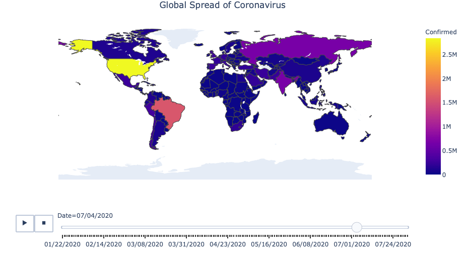 In this post, I would like to show you how to create an interactive map plot using the Coronavirus cases data. As the numbers started to rise again, I wanted to create a global world map to see how the spreading continues across the world. I found a great data on Kaggle with the global number of cases, I will add the data link below. If you haven’t heard about Kaggle, Kaggle is the world’s largest data science community with powerful tools and resources to help you achieve your data science goals.
