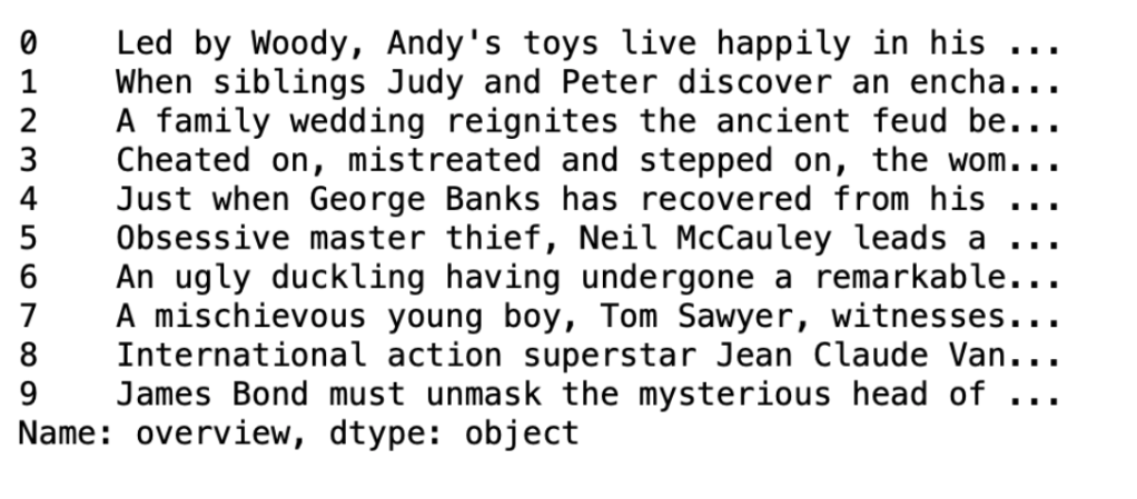 Back to the project, as an input to train our model we will use the overview of the movies that we checked earlier. And then we will use some sci-kit learn ready functions to build our model. Our recommender will be ready in four simple steps. Let’s begin!
