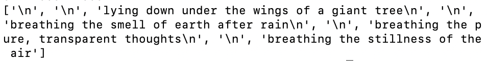 Make sure each sentence is on a new line. When reading the text document, we will convert each line into a list item.
