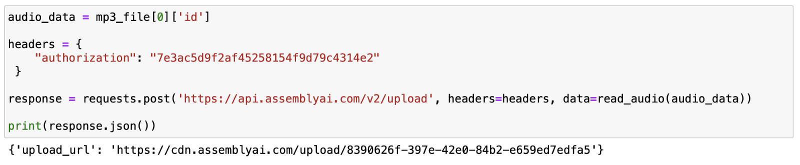 response = requests.post('https://api.assemblyai.com/v2/upload', headers=headers, data=read_audio(audio_data))
